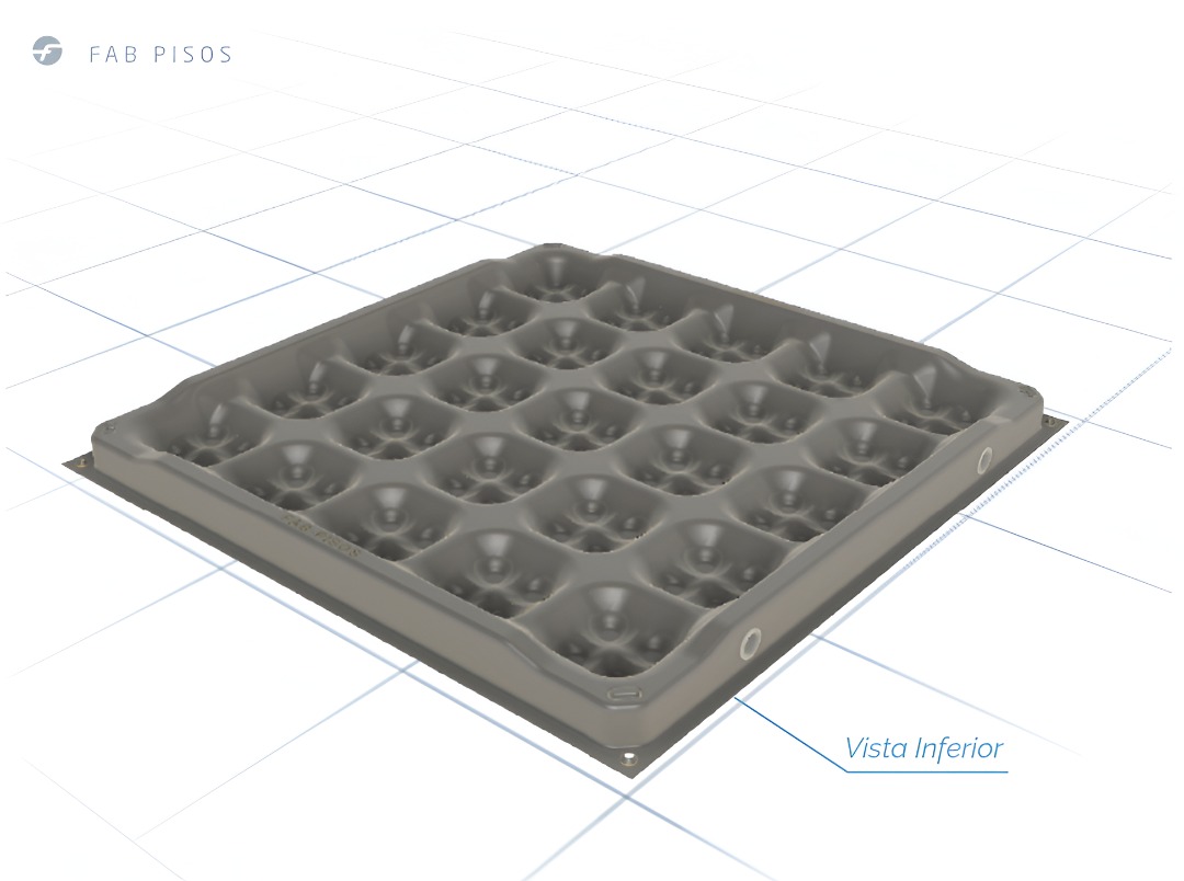 A placa de piso elevado Fab é composta por duas chapasde aço carbono Laminado a Frio, sendo face superior de alta dureza, a inferior SAE1006 EEP, com estampagem de 25 Domos estruturais alinhados, que contém uma pequena área plana para melhor aplicação nos pontos desolda.